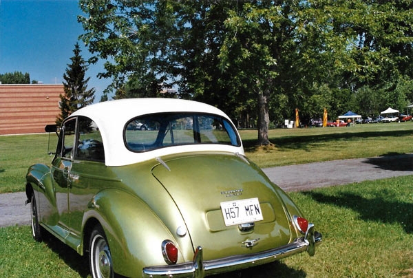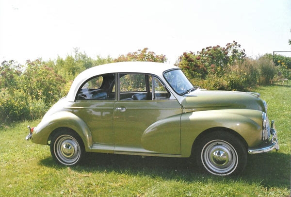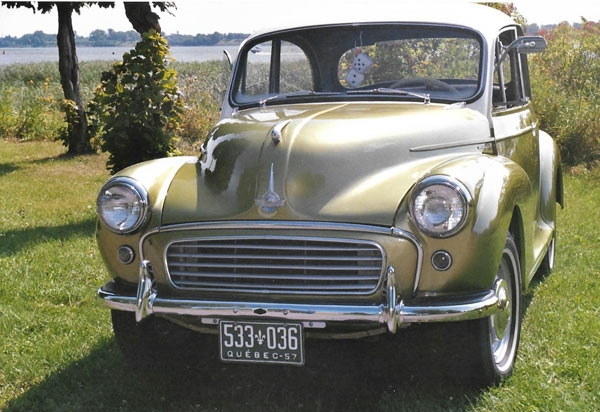 Le manque d’enthousiasme initial de la part de la Direction explique la stabilité de ce modèle, au cours de ses 23 ans de production. Le premier Type, la Série MM fut produite en version berline deux portes et décapotable. Une version berline quatre portes apparaissait, en 1951. Les phares furent déplacés pour répondre aux exigences nord-américaines. En 1957, année de fabrication de notre Vedette, le modèle changea de nom pour devenir la Morris 1000, pour souligner le fait que son moteur avait une cylindrée de presque 1000 cm.Elle a M. Robert Dufour.