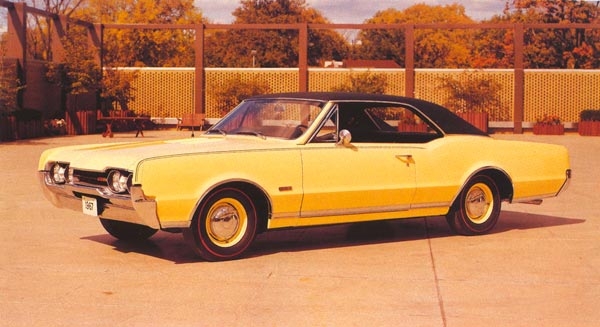 En 1967, l’Oldsmobile avait une nouvelle calandre. Ses phares doubles avaient été légèrement écartés pour pouvoir insérer les feux de position rectangulaires, entre eux. Le parechoc avant avait subi quelques changements mineurs. Le capot avait été allongé vers l’avant. À l’arrière, le parechoc était plus massif, alors que les feux de position, bien que toujours disposés à la verticale, au bout des ailes, avaient légèrement diminué de grosseur. La nouvelle transmission Turbo Hydra-Matic à trois rapports remplaçait la Jetaway à deux rapports. Elle transmettait la puissance aux roues arrière avec beaucoup plus d’efficacité que cette dernière. La transmission manuelle à trois rapports était toujours celle qui était fournie d’office. Toutefois, ceux qui n’en étaient pas satisfaits, pouvaient choisir la manuelle à quatre rapports ou, l’automatique, les deux offertes en option, moyennant un léger supplément.